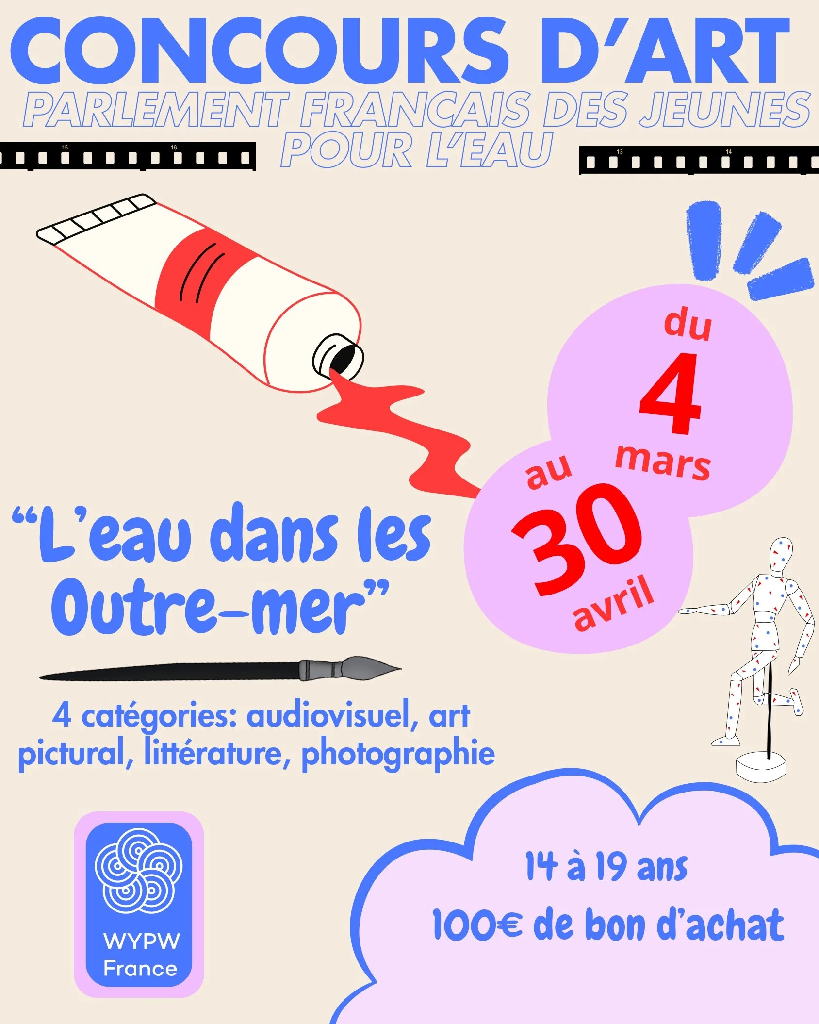 Le Parlement Français des Jeunes pour l’Eau s’est engagée depuis sa création en juin 2025 à porter la voix de tous les jeunes. C’est pourquoi la thématique de la commission discrétionnaire 2026-2027 s’est naturellement portée sur les Outre-mer. Dans le sillage de cette dynamique c’est avec plaisir que les 10 jeunes parlementaires de cette commission vous propose ce concours artistique comme un moyen de mettre en lumière les réalités locales et de créer des passerelles entre tous les territoires français des espaces ultramarins à l’hexagone.